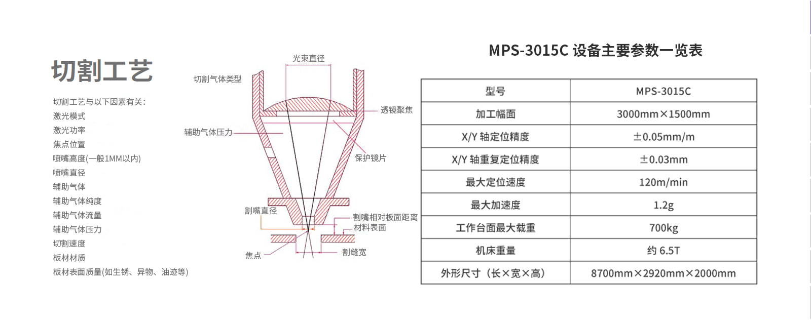 MPS-C系列主要面對有高效激光切割加工需求的客戶群,該系列機型采用伺服雙驅齒輪齒條結構,平行交互工作臺,全包圍鈑金外防護,是一款性能優越,性價比極高的激光切割產品。
