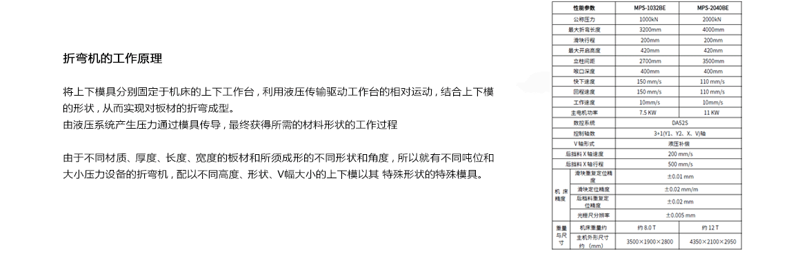 MPS-1032BE系列同步數(shù)控折彎?rùn)C(jī)主要由機(jī)架、滑塊、液壓系統(tǒng)、后定位系統(tǒng)、電氣系統(tǒng)、撓度補(bǔ)償機(jī)構(gòu)、數(shù)控系統(tǒng)及模具等組成。